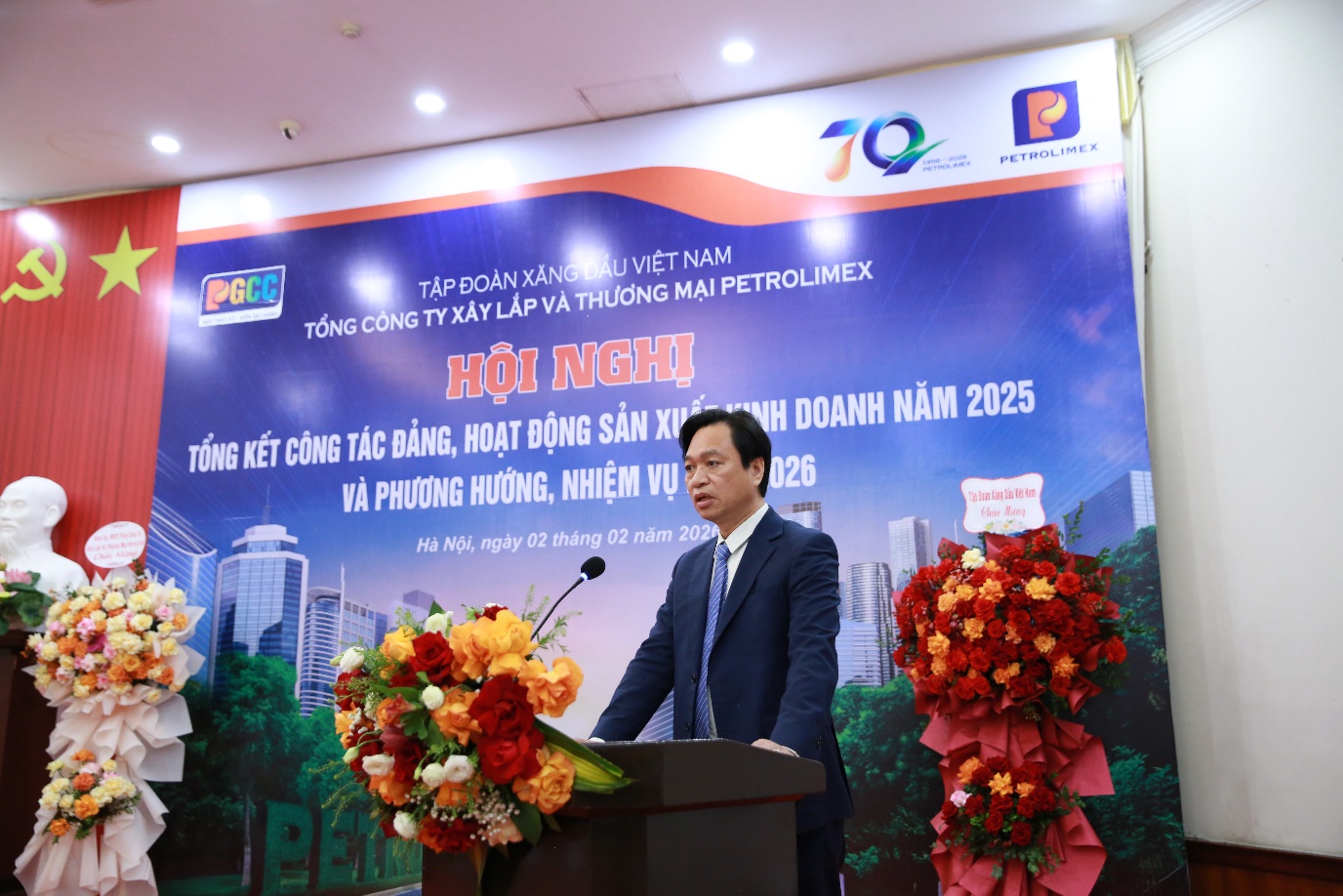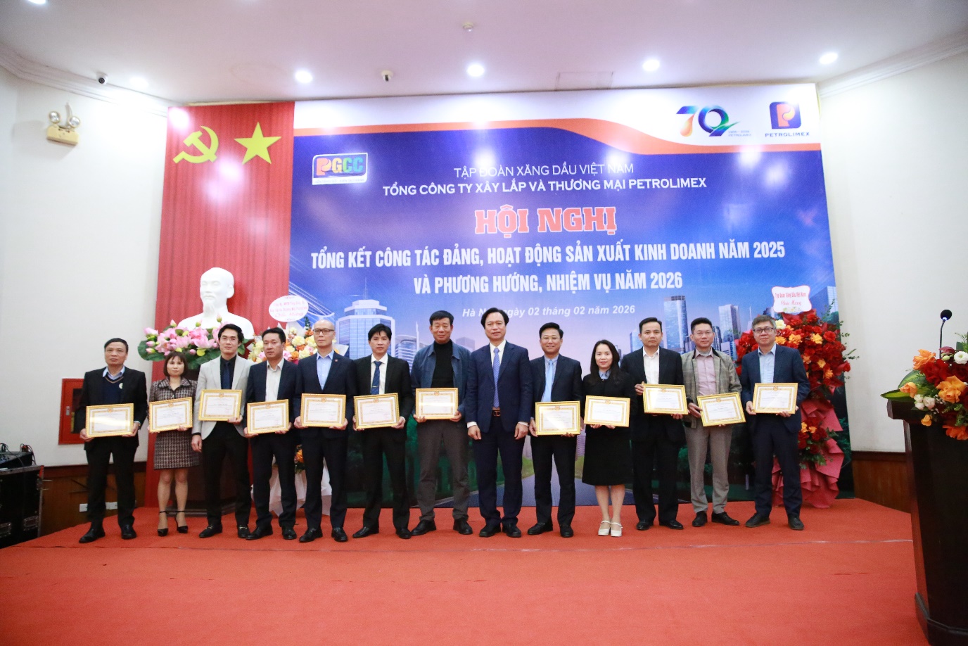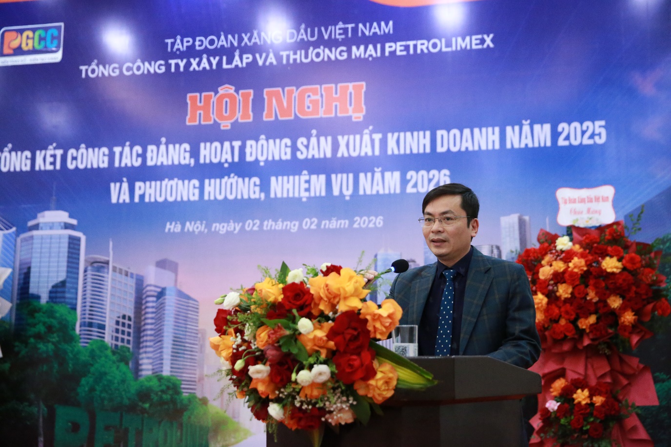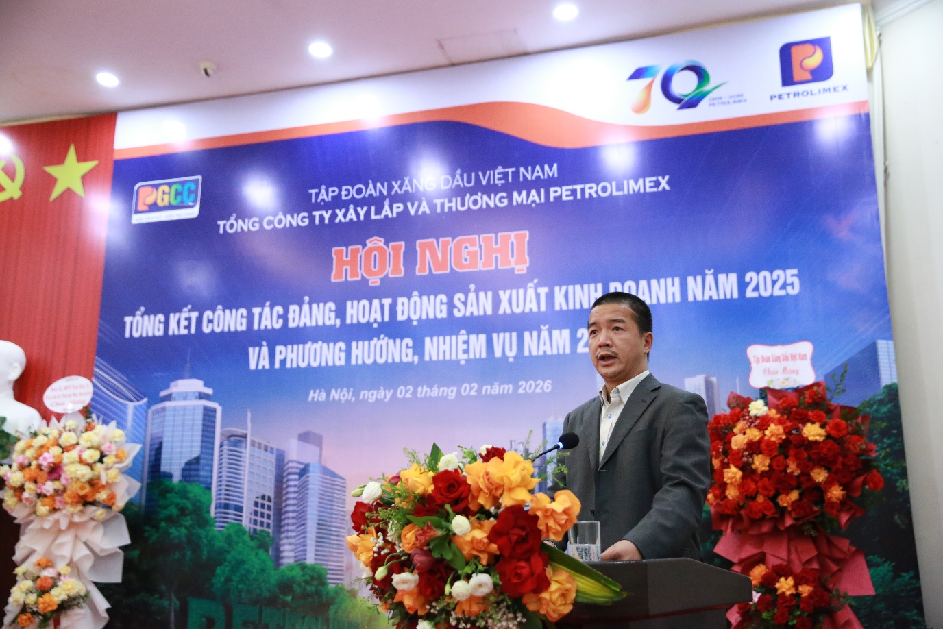 Chiều ngày 02/02/2026, Tổng công ty Xây lắp và Thương mại Petrolimex (Tổng công ty/PGCC) tổ chức Tổng kết Hội nghị tổng kết Công tác Đảng, hoạt động sản xuất kinh doanh năm 2025 và phương hướng, nhiệm vụ năm 2026 tại Hội trường E2 Nhà khách La Thành – Số 226, Phố Vạn Phúc, Phường Ngọc Hà, Thành phố Hà Nội.